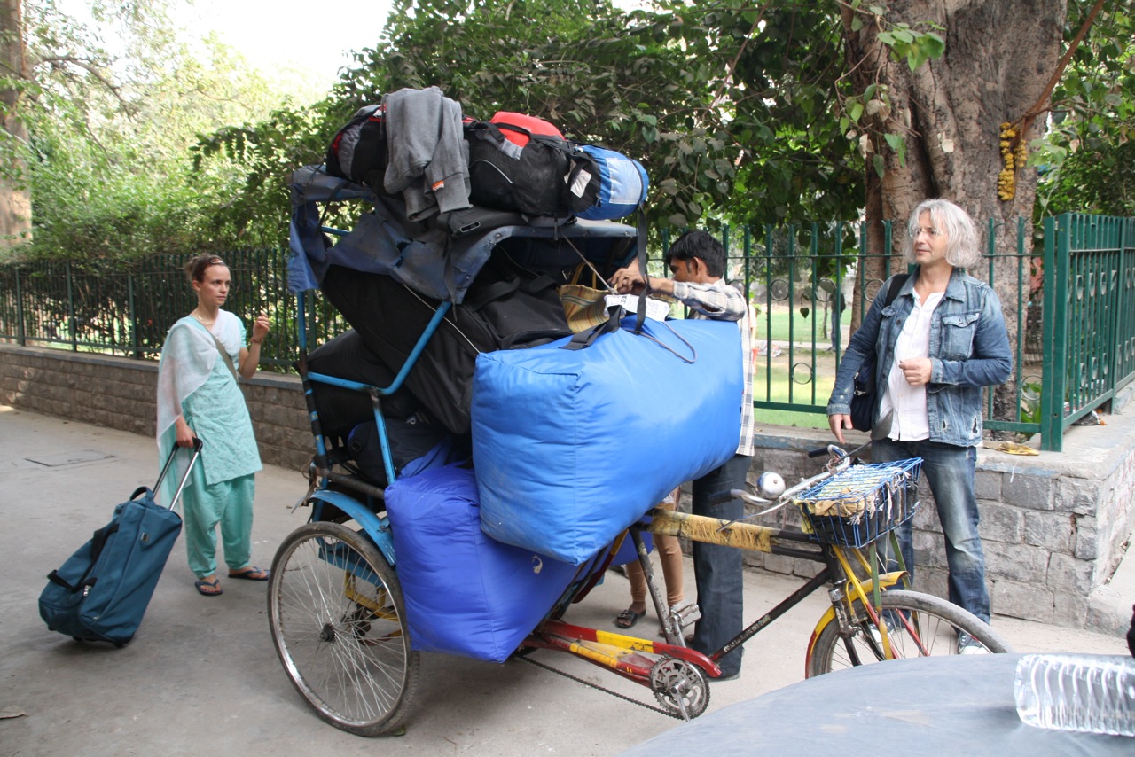 Wir beschließen, in ein billigeres Hotel zu wechseln, welches wir mithilfe unserer Freunde schließlich finden. Wie ihr seht, ist die Transportkapazität einer indischen Fahrradriksha quasi unerschöpflich ;-)