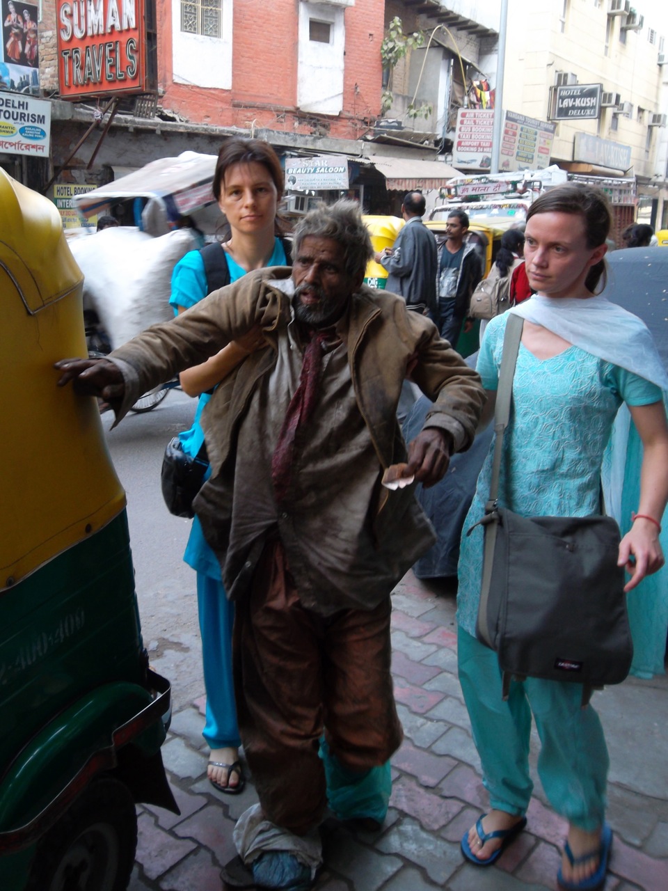 Aus einer schmalen Seitengasse kommend, begegnen wir einem alten, ausgemergelten Mann, der uns mit aufgehaltenen Händen um eine Gabe bittet.