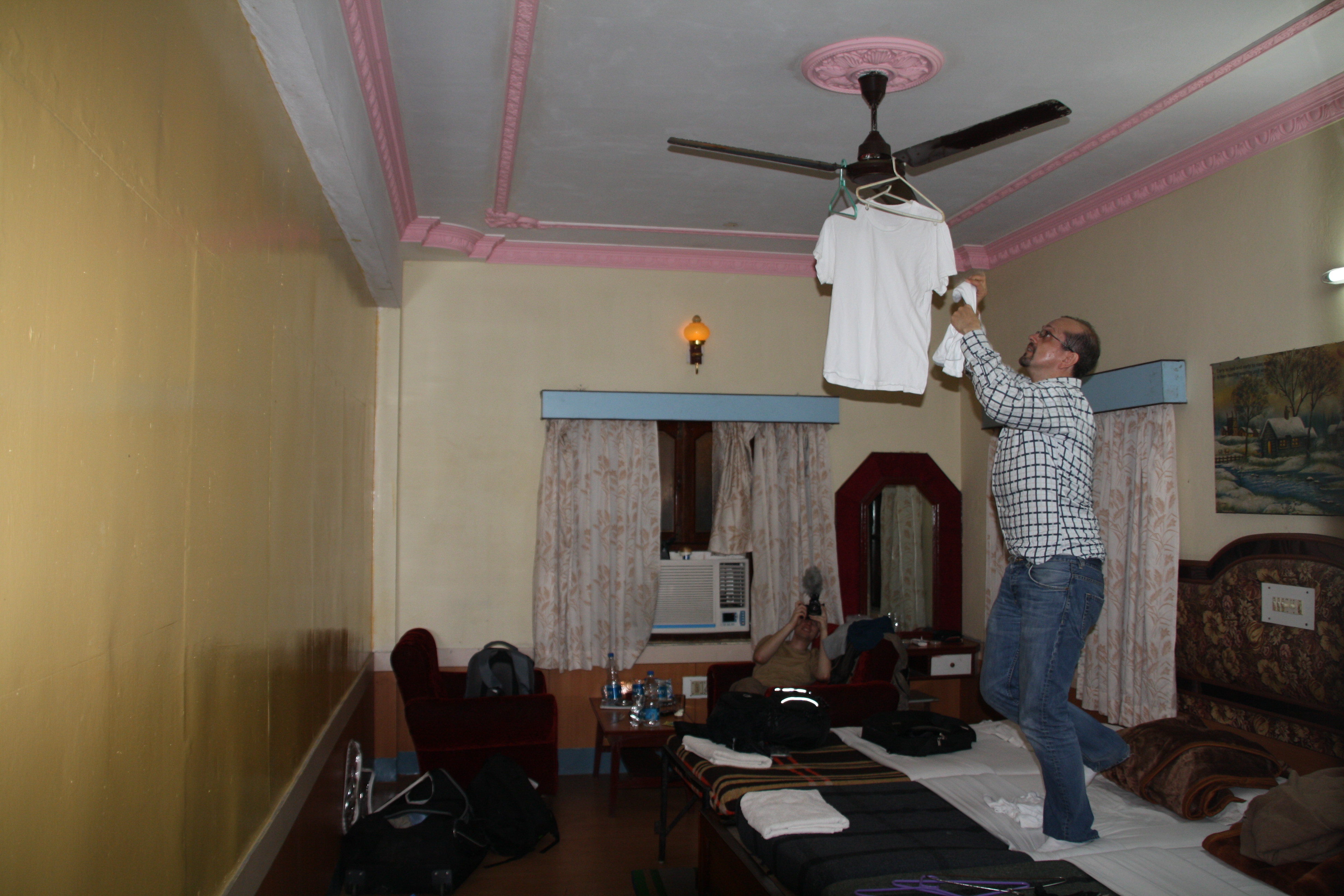 Der Zug ist pünktlich und um 19:30 Uhr erreichen wir unser Hotel. Das erste hat leider schimmelige Zimmer, das zweite ist zwar feucht aber ok.. Im "Jungszimmer" wird noch ein Klappbett (indisches Klappbett = Brett mit Füßen) aufgebaut und die Akkus angeschlossen, dann gehts zum Abendessen.